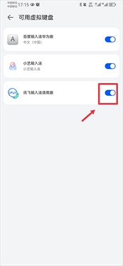 2、接着在可用的虚拟键盘里把讯飞输入法清爽版打开。