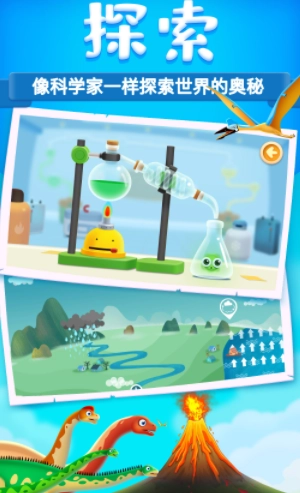 【探索】《编程课堂》培养孩子编程思维;《恐龙来了》带孩子认识霸王龙、梁龙、三角龙、剑龙等50种恐龙;《物质探索》可以像科学家一样做实验,探索化学元素周期表中118个“有性格”的元素;《地球万象》带孩子认识火山、山体滑坡、地震、冰川等地质形态、《天气百态》帮孩子认识云、雨、雪等天气现象;《天赋七巧板》18个主题,让孩子手脑并用,提升脑力;《数学船长》运用趣味海盗船情景设计,激发学习数学的热情;《水流世界》让孩子开动脑筋。