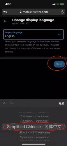 6、选择简体中文,最后点击保存按钮‘SAVE’。