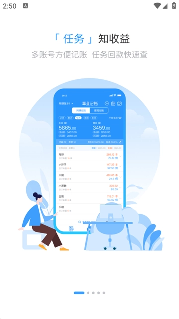 支持多种筛选条件查询,实时统计收支情况、任务量完成情况等等