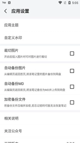 1、在设置界面,你可以自定义水印、自动备份图片、加密备份文件等知识。只需进入“我的”页面,然后轻松找到设置选项,进行个性化配置;