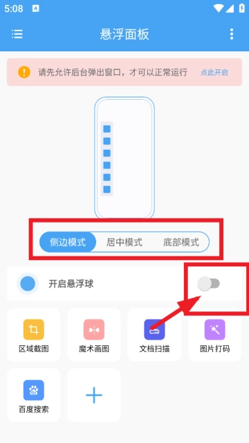 该软件允许用户把常用功能,像打开特定应用程序、扫一扫等,放置在悬浮面板上。