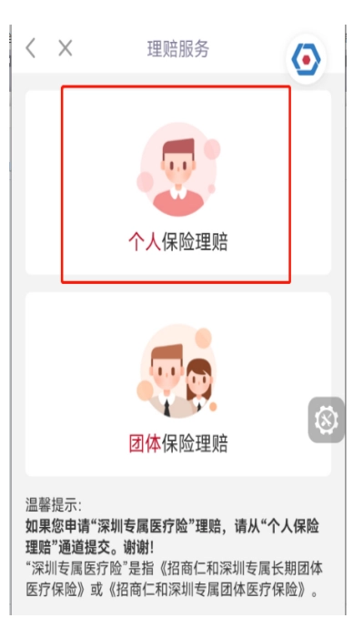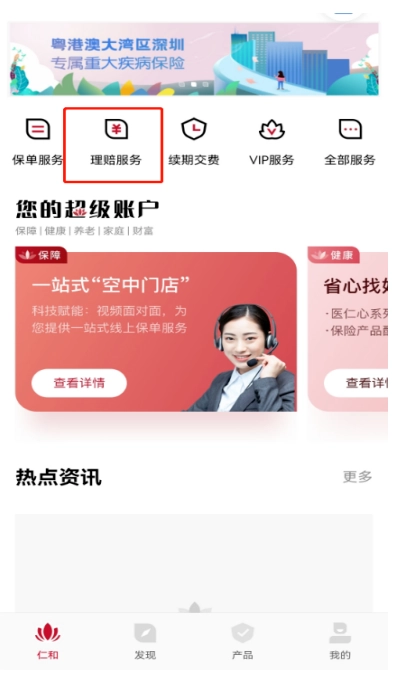 2. 来到首页,点击 “理赔服务”,具体位置如下图所示。