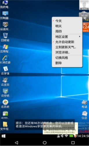1.交通监控、日历、天气、任务管理器、智能搜索、IE浏览器。