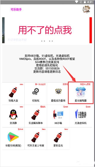1、首先打开可乐助手正版安卓版,点击星元编辑器;