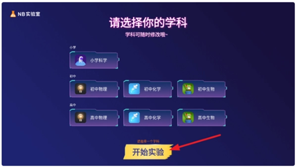 1、在本站安装点击打开,打开软件选择大家的实验学科,点击开始实验。