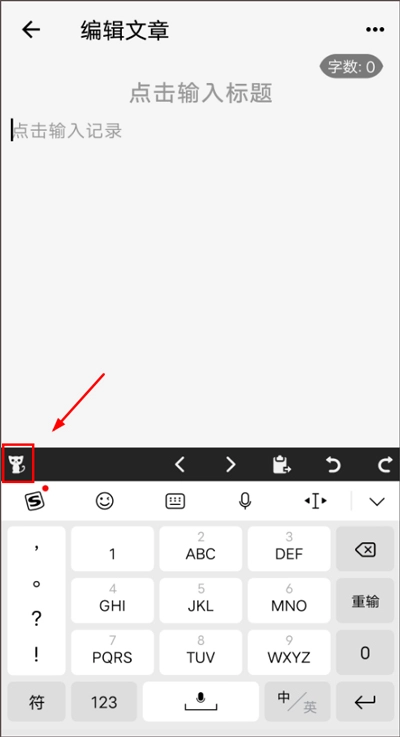 2、App默认开启Markdown即使所见即所得模式。但用户想切换成其他模式,在编辑页面出现键盘是,点击上面的工具栏上左边小猫