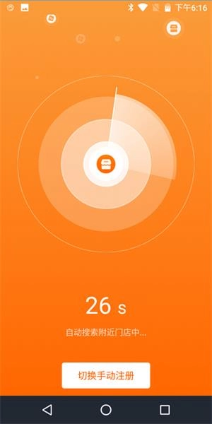 1、点击启动点菜宝,进入登录扫描页30S倒计时自动搜索附近店铺信息,如图。