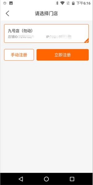 2、30S倒计时内搜索到店铺信息,进入选择门店页展示门店信息,如图;勾选门店点击“立即注册”按钮即可注册成功进入登录页