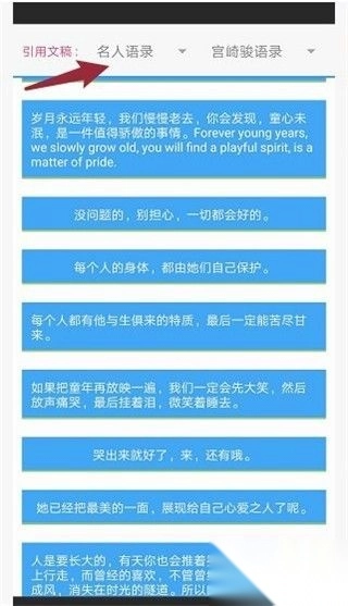5、在主页点击分号按钮,就能添加更多名言名句。