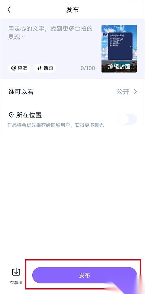 4、编辑发布的内容文字,选择权限,然后发布。