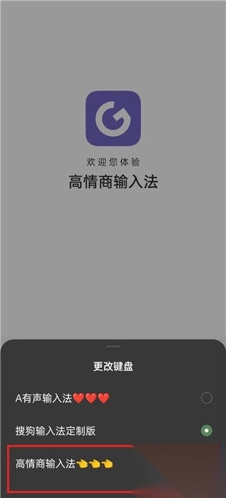 3、接着在下发会弹出一个对话框点击【高情商输入法】;