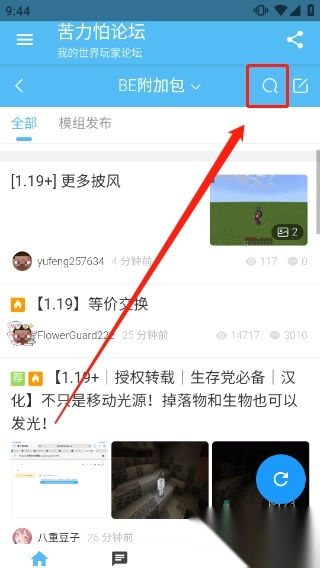 1、打开苦力怕论坛后可以搜索需要获得的模组,也可以在首页中寻找你感兴趣的模组