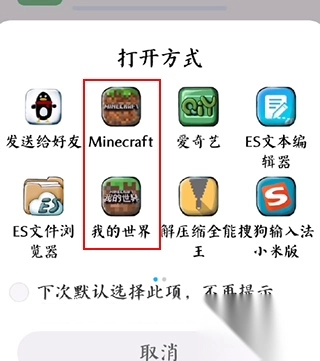 3、部分手机系统自带浏览器可以直接选择打开MOD模组运行环境,我们选择我的世界游戏即可