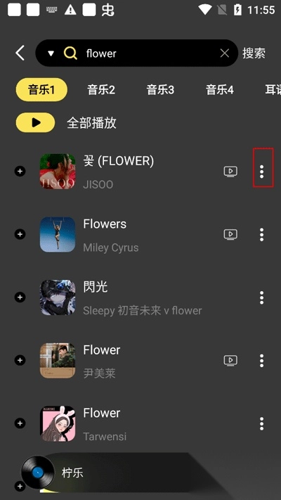2、点击歌曲右边的三个小点