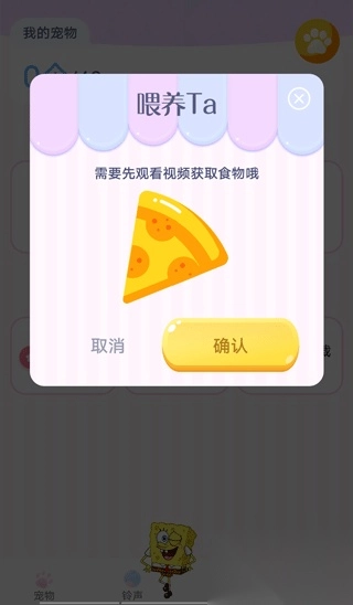 2、点击文字,需要先关观看视频,获取食物,获取食物后即可进行喂养。