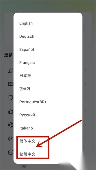 2、当然,找到“更多→语言→中文”也可以轻松设置为中文。