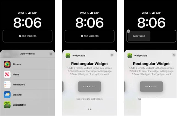 4、设置小部件后,你可以转到锁定屏幕,按住屏幕,然后点击自定义。点击添加小部件并查看矩形 Widgetable 小部件是否出现在菜单中。如果没有,你可能需要向下滚动到Widgetable并选择你的小部件。选择你喜欢的尺寸并点击它以从你保存的 Widgetable 小部件列表中选择实际的小部件。然后,只需按完成!你也可以前往iPhone设置中的墙纸,然后点击锁屏预览下的自定义。点击你要添加小部件的位置,然后选择你的 Widgetable 小部件。现在,你将能够在锁定屏幕上看到它!你的朋友也需要完成此步骤才能看到它。在你们都将其添加到锁定屏幕后,它将自动同步和更新。尝试其他 Widgetable 小部件。
