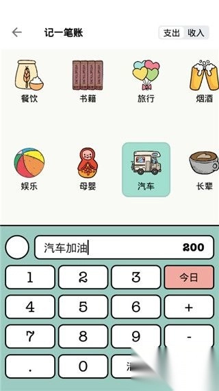 1、记账时需要选择一个分类,切换支出或者收入