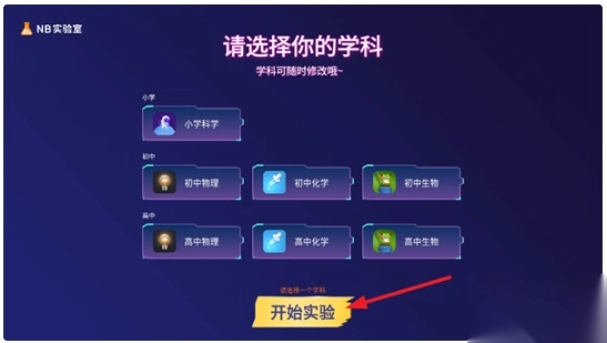 1、在本站安装完之后,打开软件选择大家的实验学科,点击开始实验。