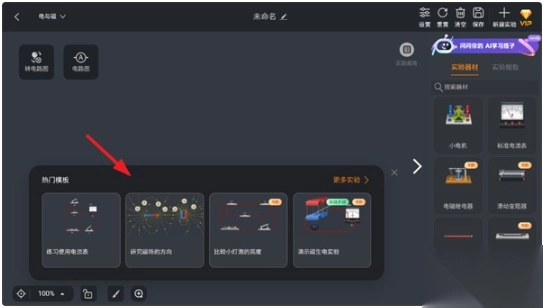 3、按照箭头的指示,在热门模版中找到自己所需的实验类型模版,便可开始实验。