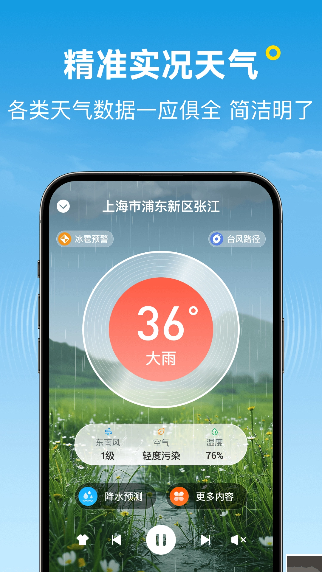 优美人声,播报当天天气概况,解放您的双眼
