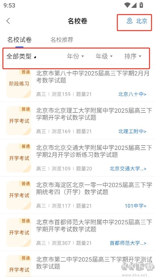 2. 挑选你所需的试卷资源,可选择地点、年份等相关信息。