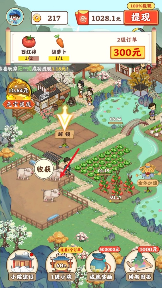 3、作物播种后需要经历一段时间的生长周期,待其成熟后,点击即可完成收获操作。