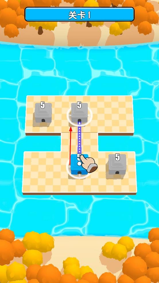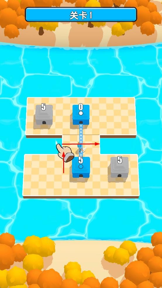 1、进入关卡1后,请操控蓝色方块,按照提示箭头所指的方向移动它到指定位置,这样方块上的数字就能完成运算。