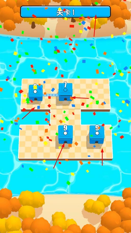 3、完成数字运算任务后,会出现彩色纸屑等庆祝效果,表示关卡完成,获取游戏分数和奖励,进入下一关游戏。