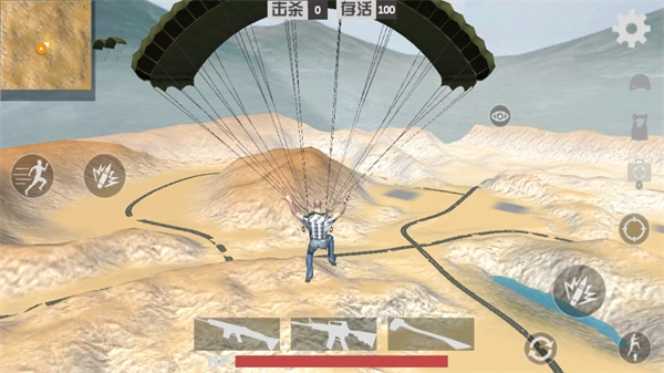 1、这是一款大逃杀类型的游戏,每局会有100名玩家加入,他们将被投放至绝地岛的上空,游戏开始跳伞时,所有玩家都身无长物。