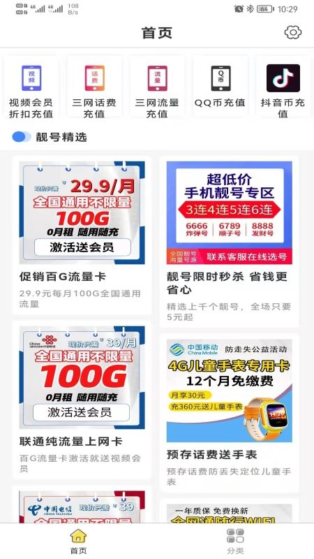 一站式服务体验:集成多项通信服务功能,一站式满足用户充值、办卡、选号等需求,大幅优化用户体验。