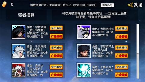 2、然后点击你想要解锁人物旁边的广告。