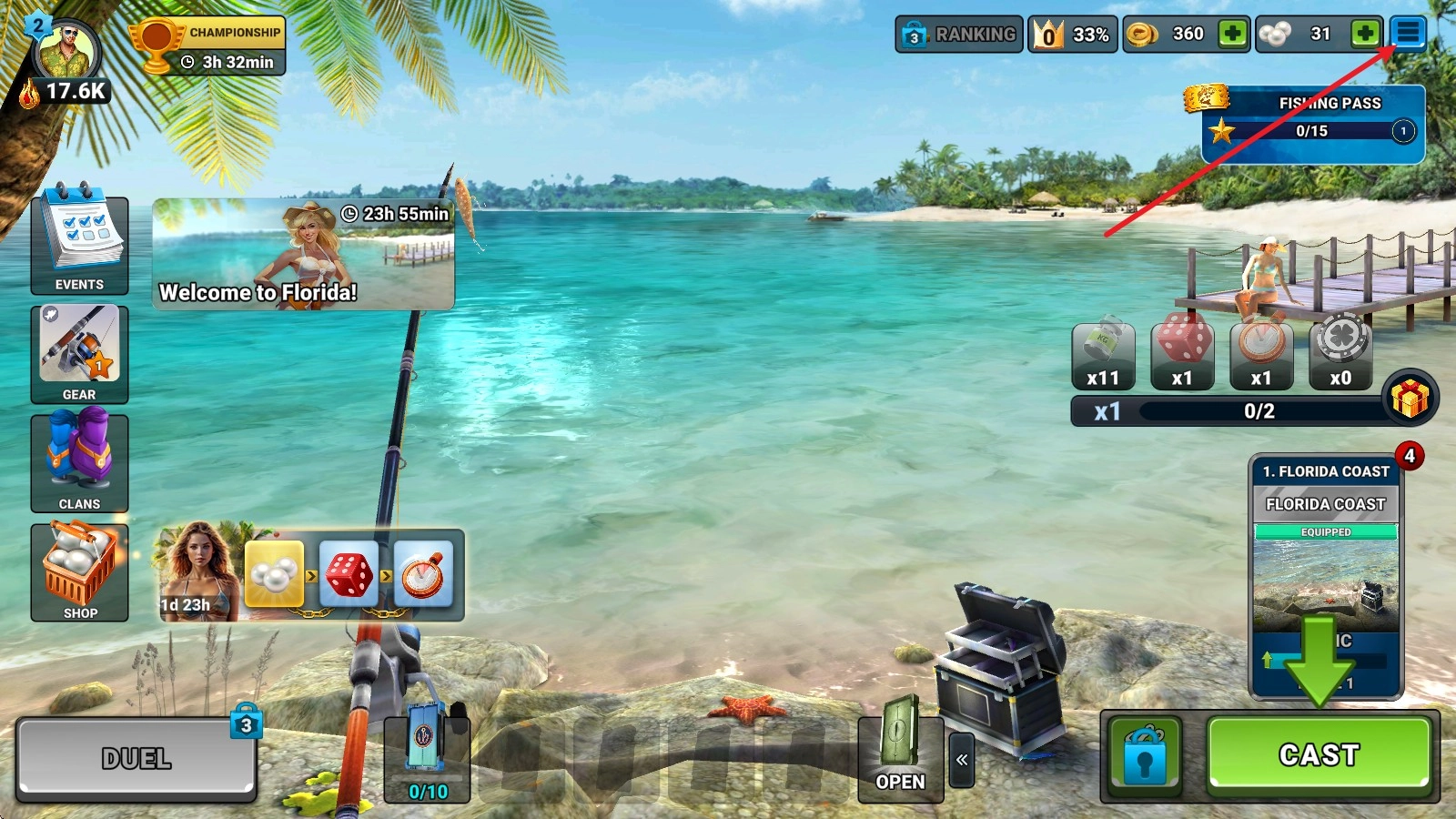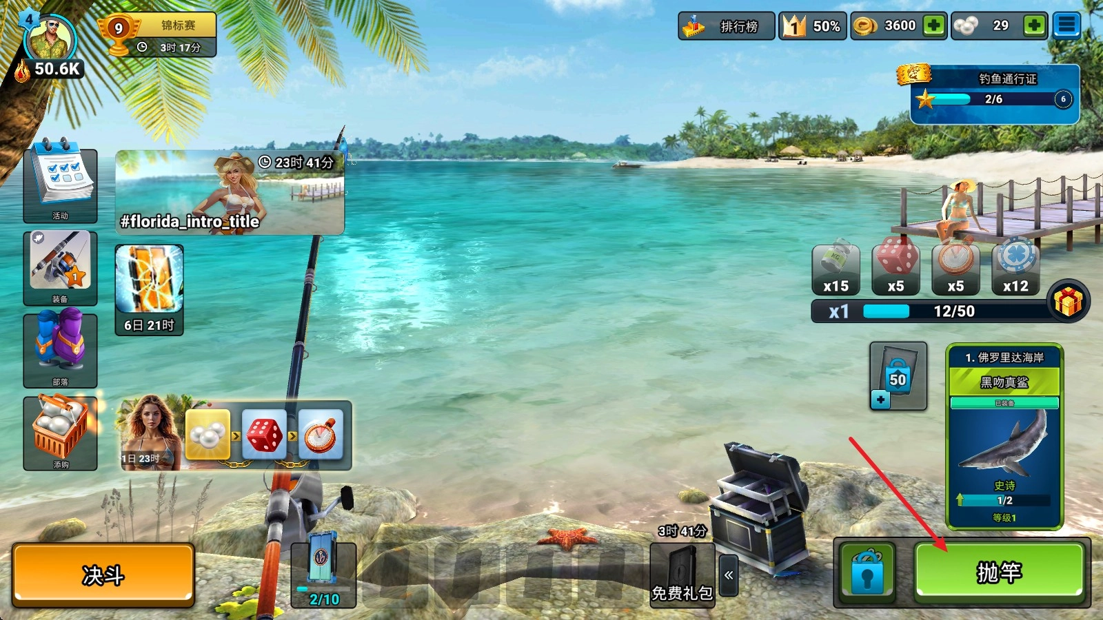1、进入游戏后,点击右下角的抛竿。