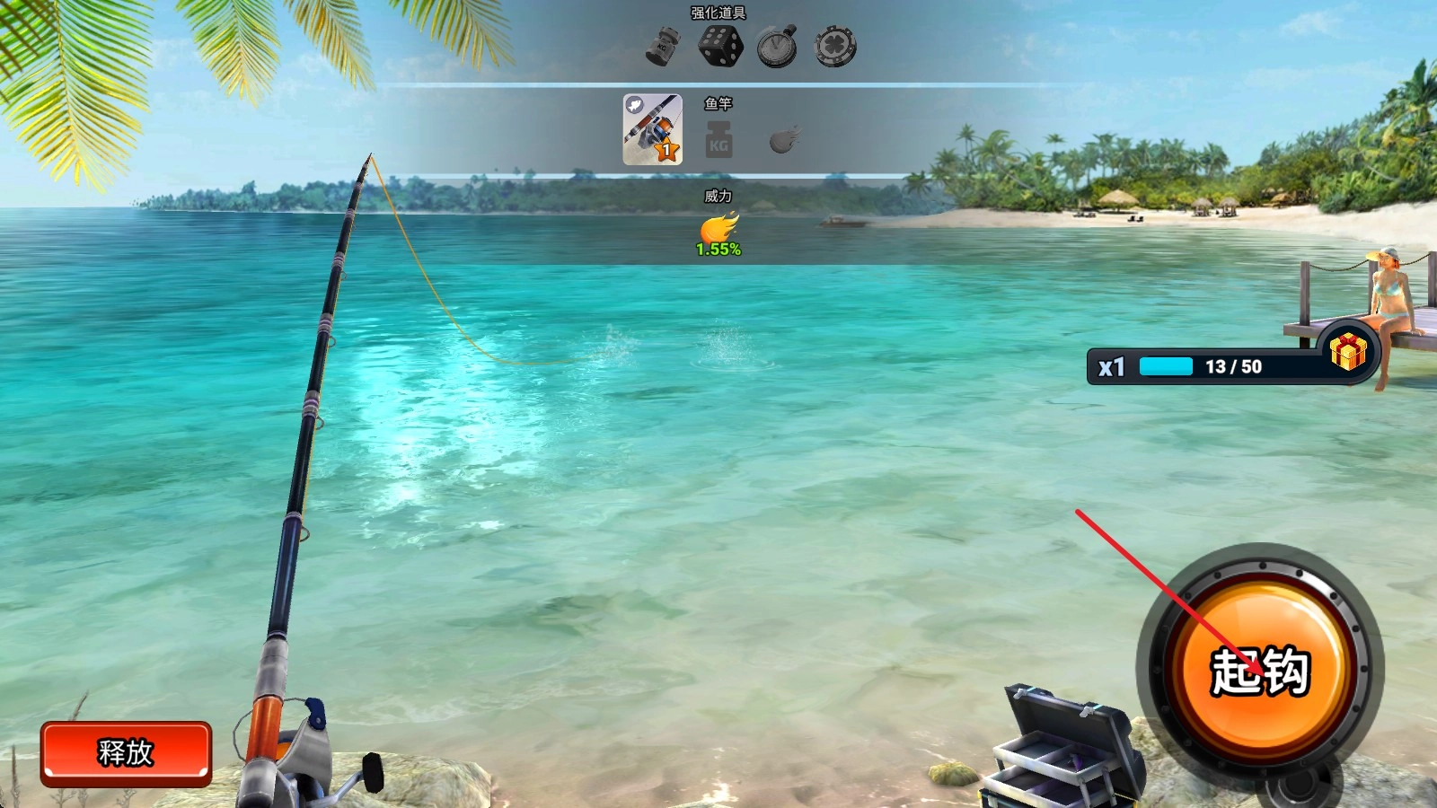 2、接着我们就需要等待合适时机,点击起钩。