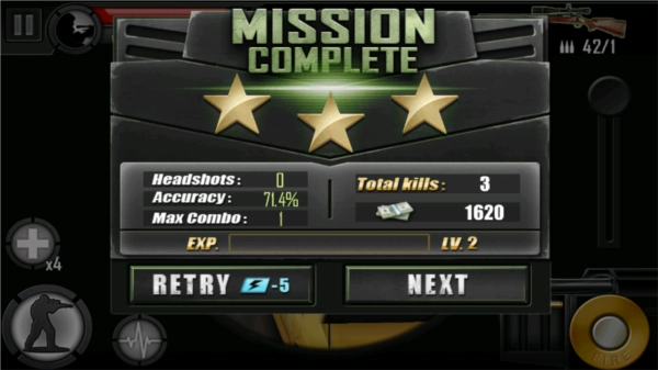 3、在游戏里,玩家每通过一个关卡都能得到一定数量的资源奖励,这些奖励可用于解锁各式各样的狙击枪,进而提升自身的射击精准度与伤害输出。