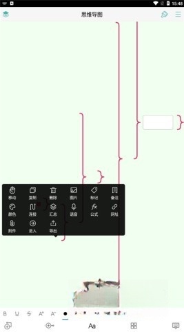 直接点击分支文字即可进行编辑,长按该文字会弹出功能选项,接着点击 + 号按钮就能添加子分支。