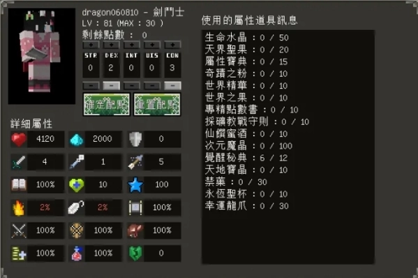 使用武器:剑,属性加成:力量、生命。