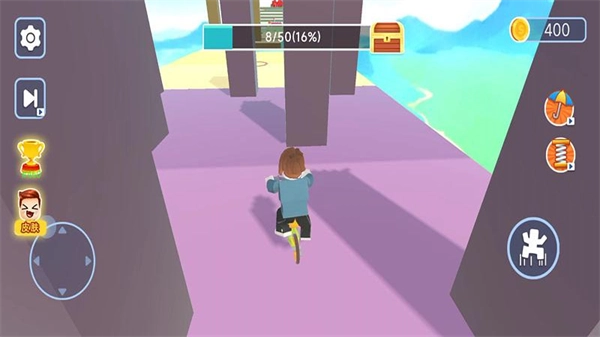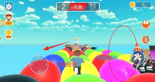 3、进入分配好的地图后,我们会和众多玩家同台竞技,操作依旧简单——左边遥控控制方向,右边切换视角,让我们努力第一个冲过终点、夺取胜利吧。