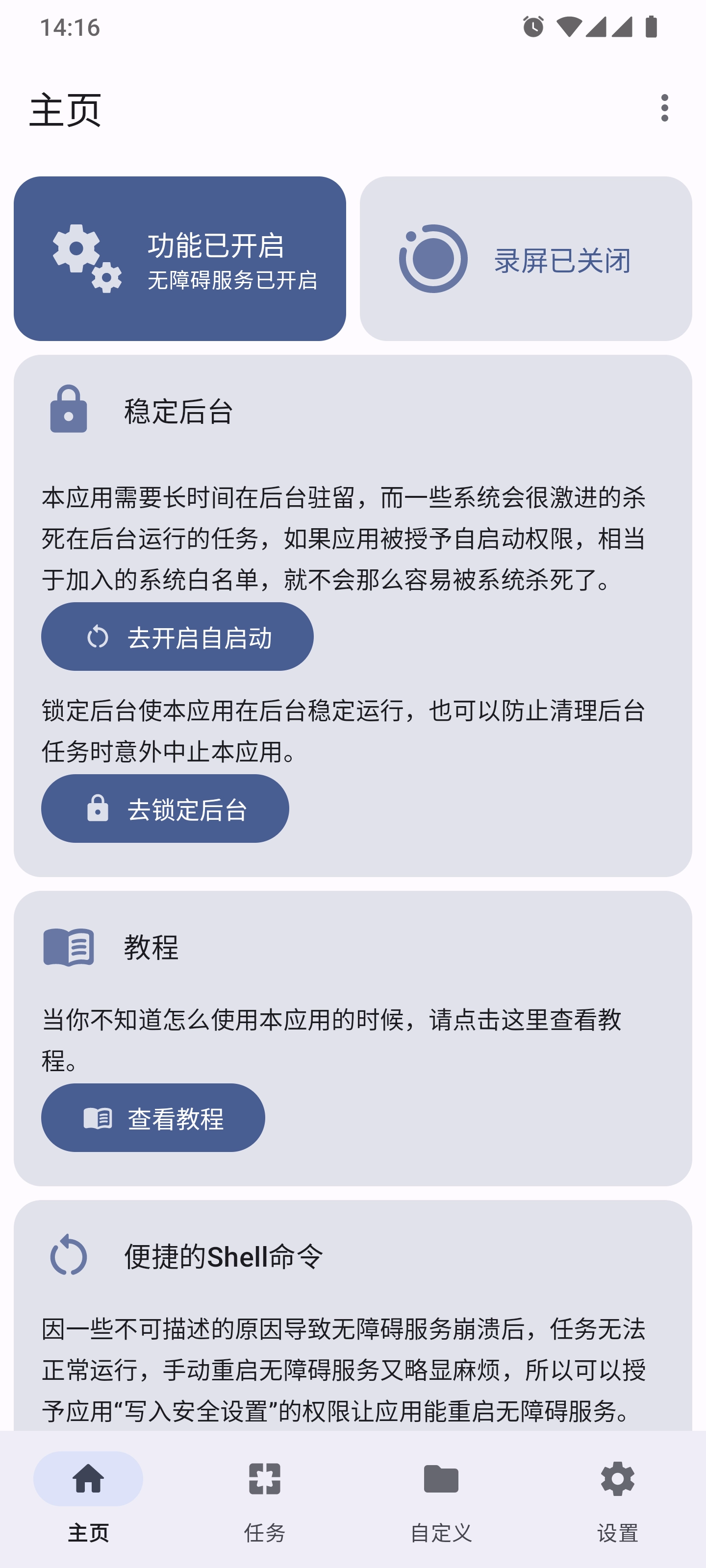 1.启动点击助手Pro,进入主界面,主页展示着一些注意事项与保活设置