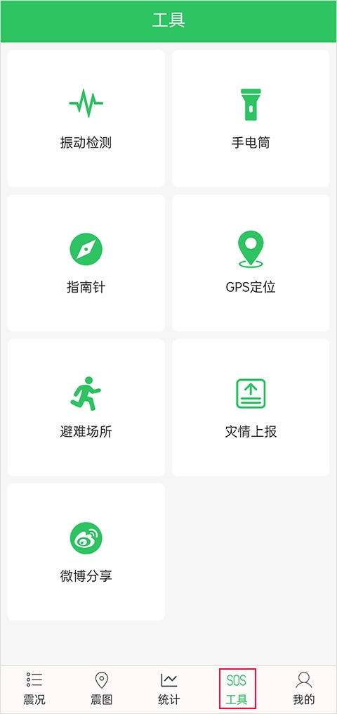 4、在工具这里还有很多的实用功能可以实用,包括了震动检测、手电筒、指南针等。