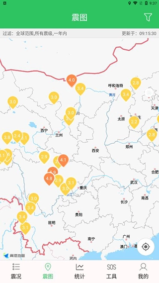 3、地震震级可以过滤地震的最低震级以上的数据。