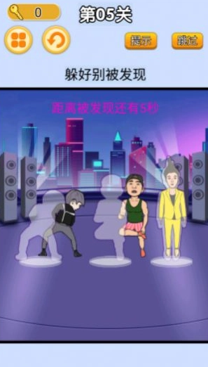 《疯狂闯关挑战》是一款趣味十足的闯关游戏,游戏巧妙融合了各种好玩又搞笑的趣味梗。玩家能够在游戏里自由操控角色摆出对应的动作来躲藏,持续挑战难度各异的关卡,在限定时间内顺利完成躲藏任务,看看自己究竟能成功闯过多少关卡。