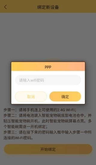 5、连接智能宠物碗时,需要先连接WiFi,并且输入对应的WiFi密码。