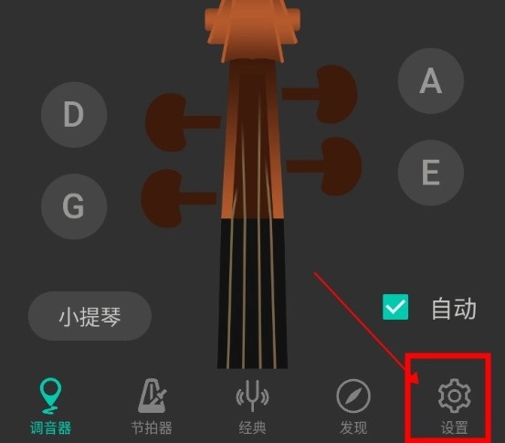1、安装并打开小提琴调音器后,点击右下角的【设置】按钮
