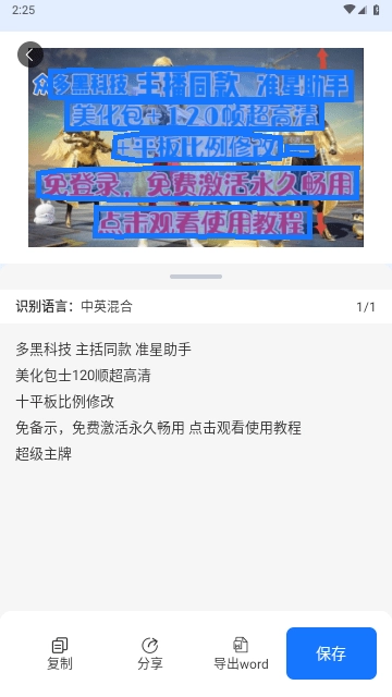 2.识别出的文字支持一键复制与编辑功能,操作完成后还能便捷地导出至本地设备