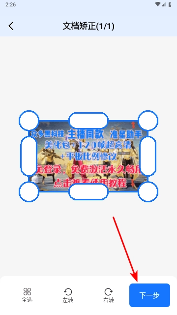 3.接着从本地相册里挑选图片,完成文档校正操作后,点击“下一步”按钮