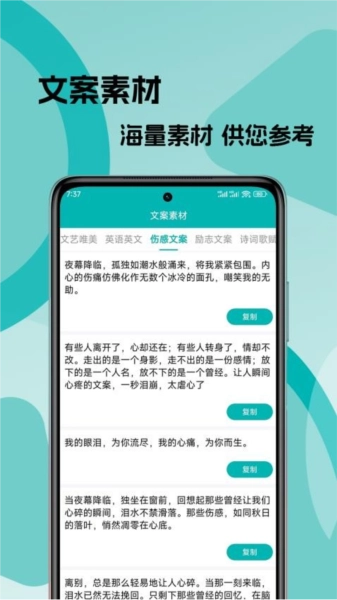 2、具备丰富多样的文案素材资源库,内容覆盖生活、科技、商业等诸多领域,能够依据实际需求进行个性化定制。