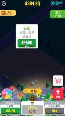 2、可以通过升级灯泡王国获取更多小灯泡,还能建造各类建筑物来收获新的收益;