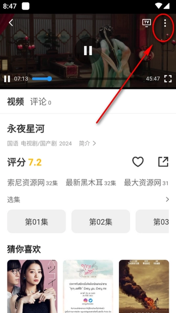 2、接着在播放界面的右上角点击三个点,如图所示。